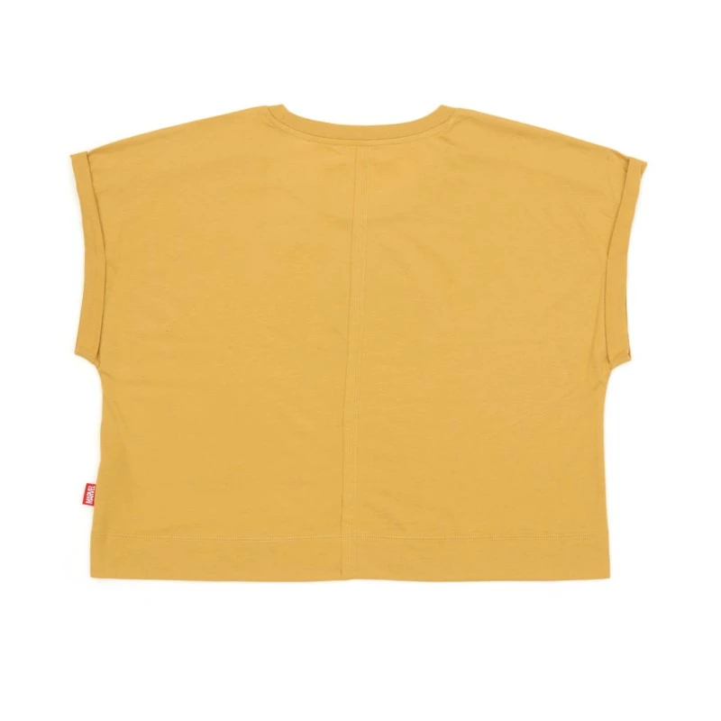 Salute the heroic life of King T’Challa, a.k.a. the Black Panther, in this boxy fashion tee with dolman sleeves, back seam, and raw edge accents. Metallic inks make the memories shine.