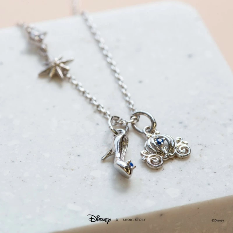 No need to wait till the clock strikes 12. Believe in magic everyday while wearing Cinderella’s whimsical charmed necklace.